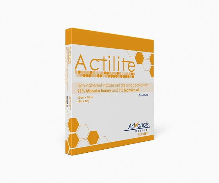 Actilite is a light, viscose net dressing, coated with 99% Manuka honey & 1% Manuka oil. This Manuka honey dressing is designed to protect the wound, promote healing and allow the passage of exudate.