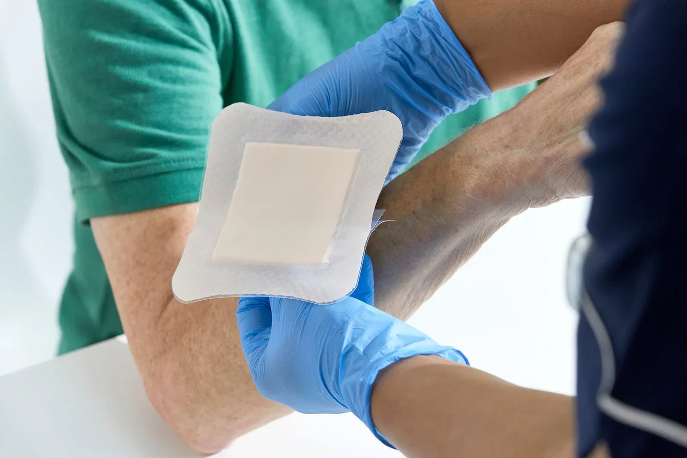 The silicone wound contact layer has multiple, small 2mm pores which enable the passage of exudate into the absorbent foam whilst protecting the fragile wound bed. This combination ensures the dressings comfortably stay in place whilst minimising the potential for maceration.