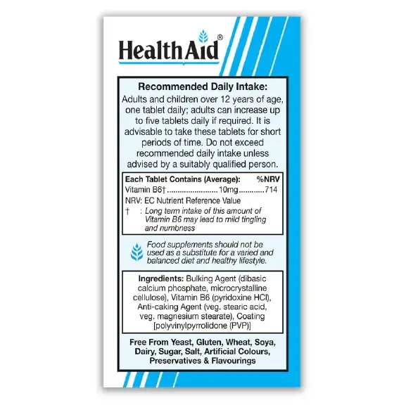 Bulking Agent (di-Calcium Phosphate, Microcrystalline Cellulose), Vitamin B6 (Pyridoxine HCl), Anti-caking Agent (Veg. Steric acid, Veg. Magnesium Stearate), Glazing Agent [Polvinylpyrrolidone (PVP)