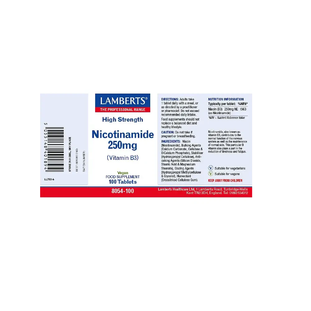 Each tablet provides a full 250mg of pure grade vitamin B3