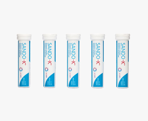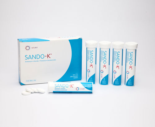 "Sando-K® is an effervescent tablet, containing 0.6g potassium chloride, and 0.4g potassium bicarbonate and is indicated for the prevention and treatment of hypokalaemia.