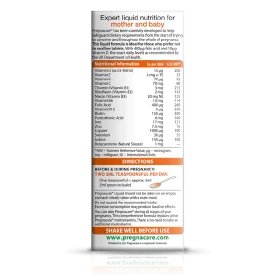 Pregnacare Liquid has been developed as an alternative supplement format for those who may have difficulty in swallowing tablets or simply prefer a liquid format. Providing an ideal alternative to tablets, the great tasting orange flavour liquid is gentle on the stomach.