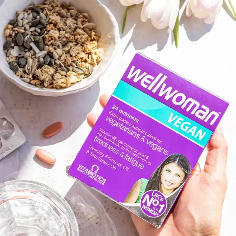 Wellwoman Vegan has been specially developed to provide higher levels of iron and vitamin B12 (when compared to Wellwoman Original).